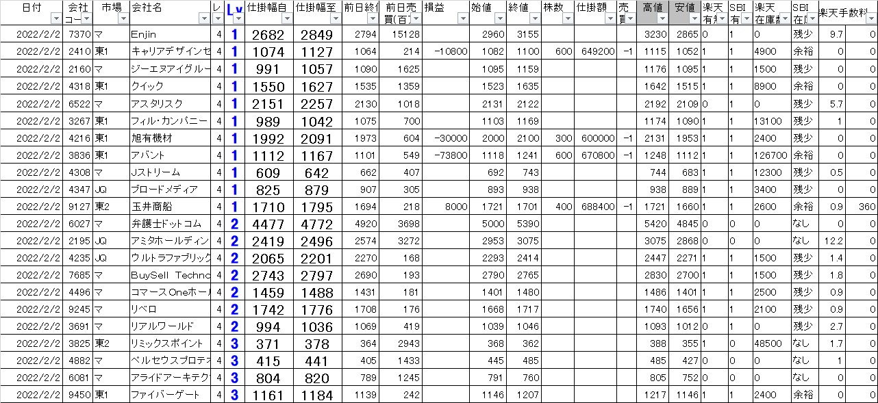 2022年2月2日 今日の寄り引けシステムトレードの損益を公開します