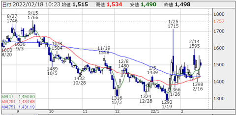 13時頃、株価2200円前後でしたが飛びつかせて頂きましたが、その後も強い右肩上がりの上昇、本日寄り付きで売却しましたが、寄り付き2358円ですからね!!