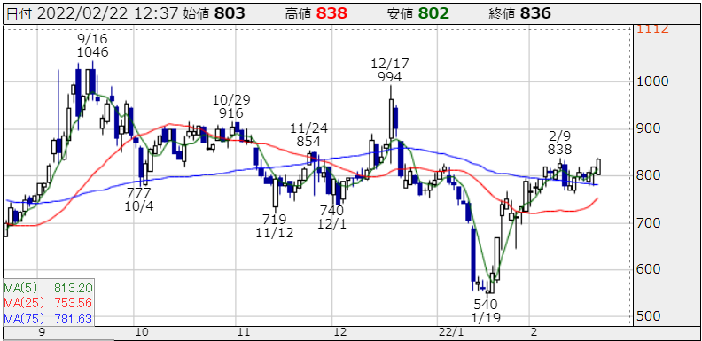 チャートは急落相場の中でも高い位置をキープしています。根固めして一段高が期待できるチャートとなっていますので注目ですよ!