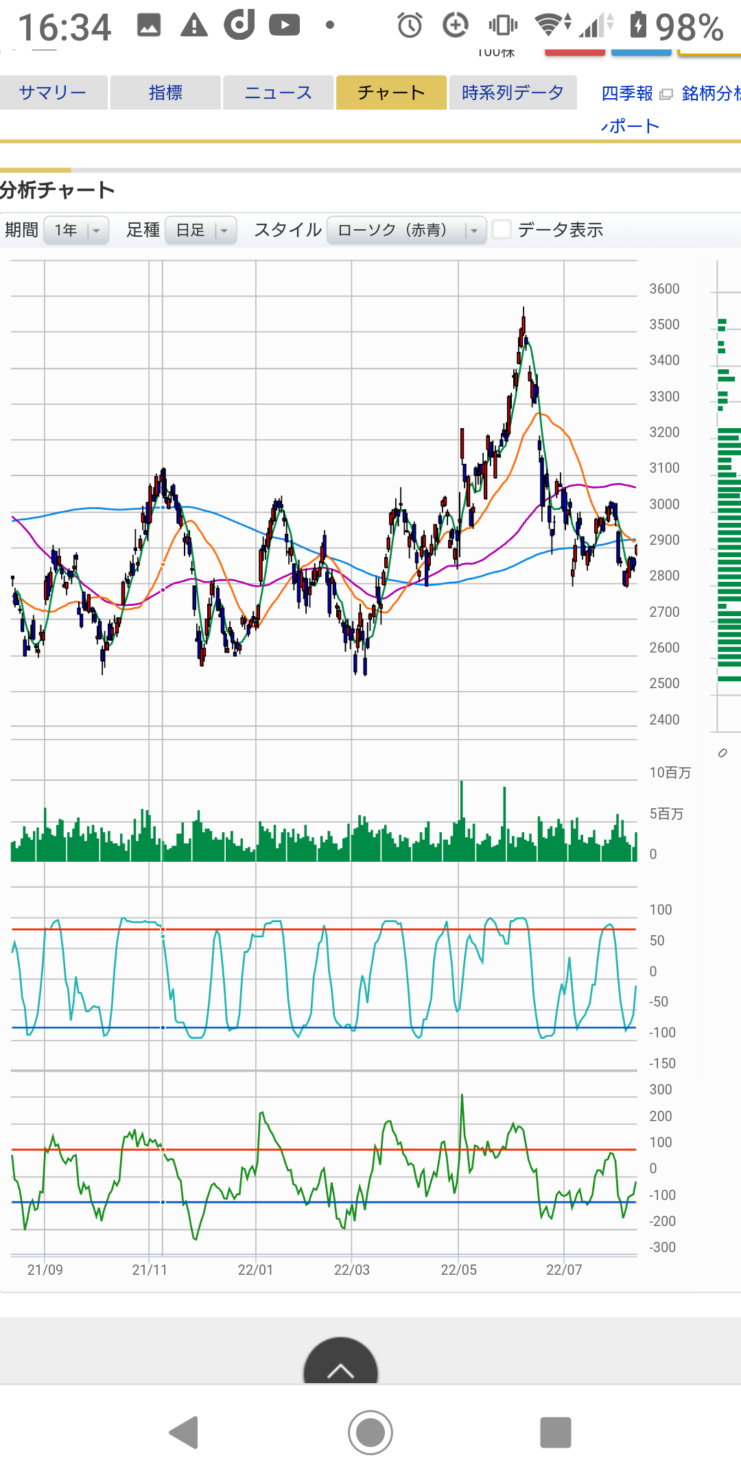 今回は、その2,600円を切っていないので、(その上で止まっている)買うのもいいかと考えた。