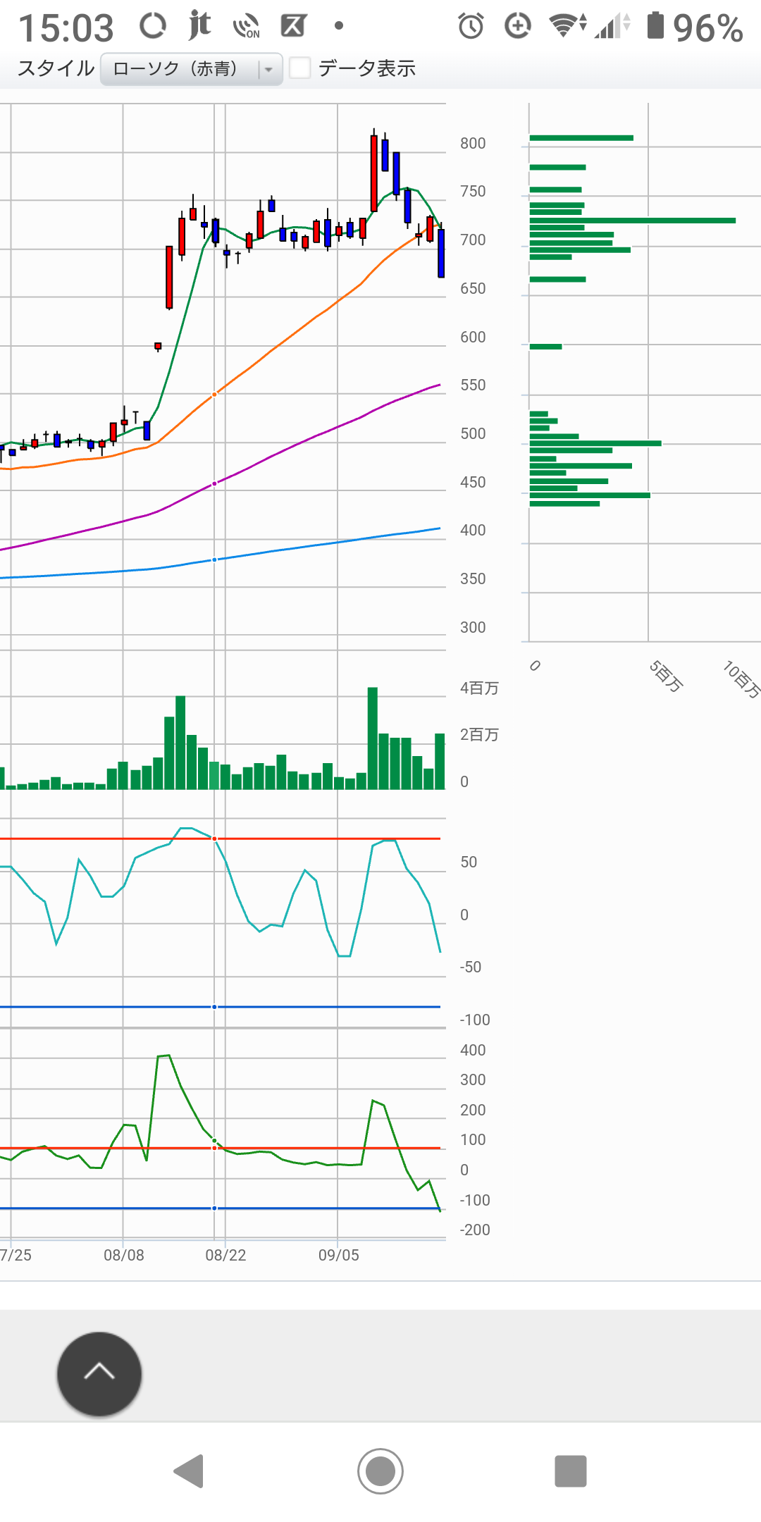 9/8(木)の終値、大陽線816円から、17%下落している。