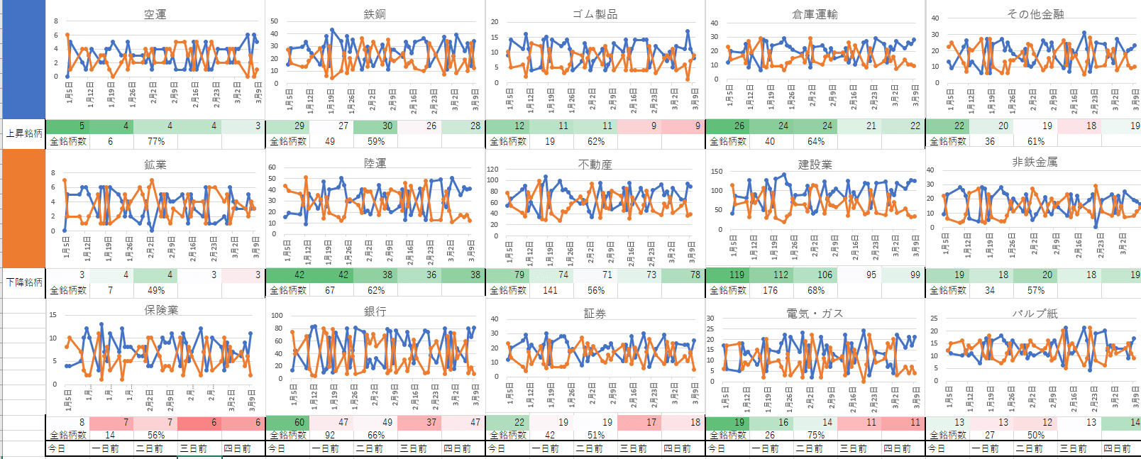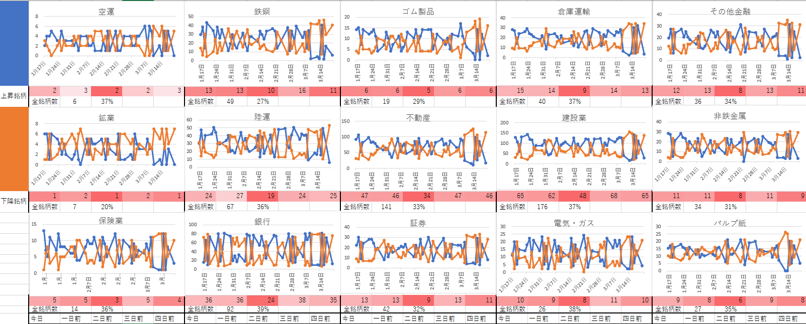 3月20日 業種アラート3月20日 業種アラート相場は上がれば下がるということを知らせてくれる指標です!