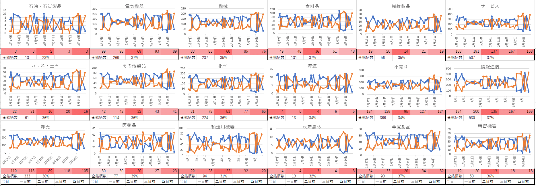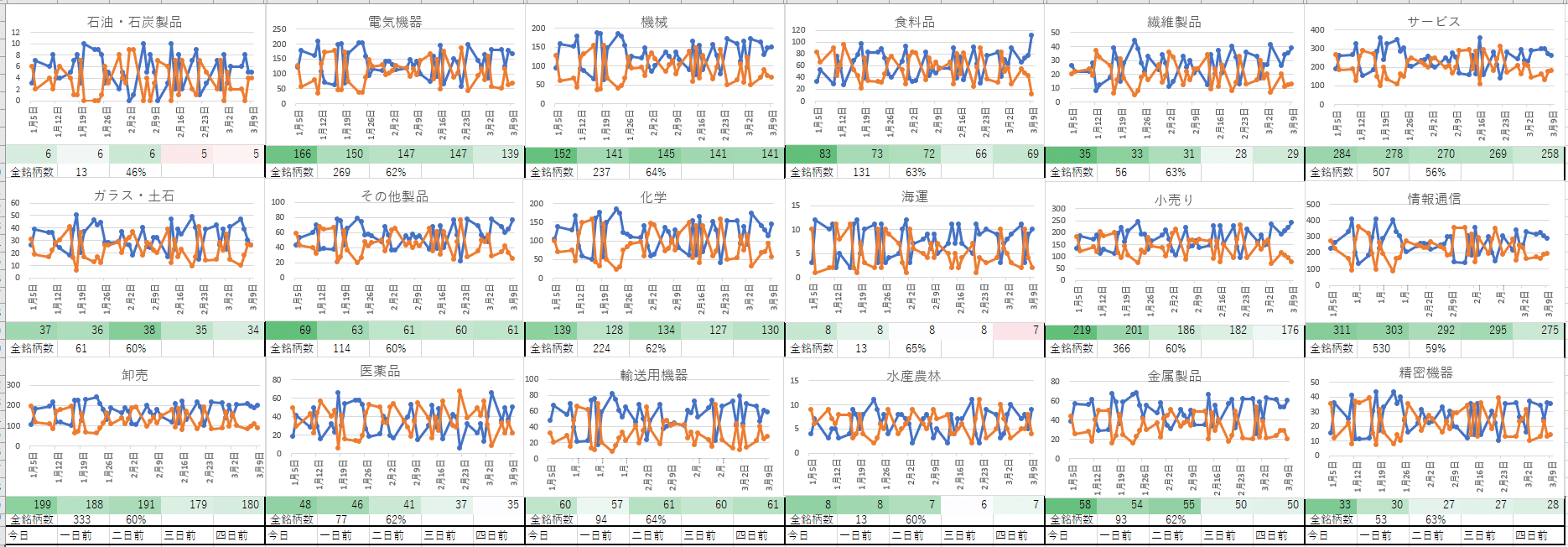 緑色  ☛  業種が過熱しすぎているため売り推奨