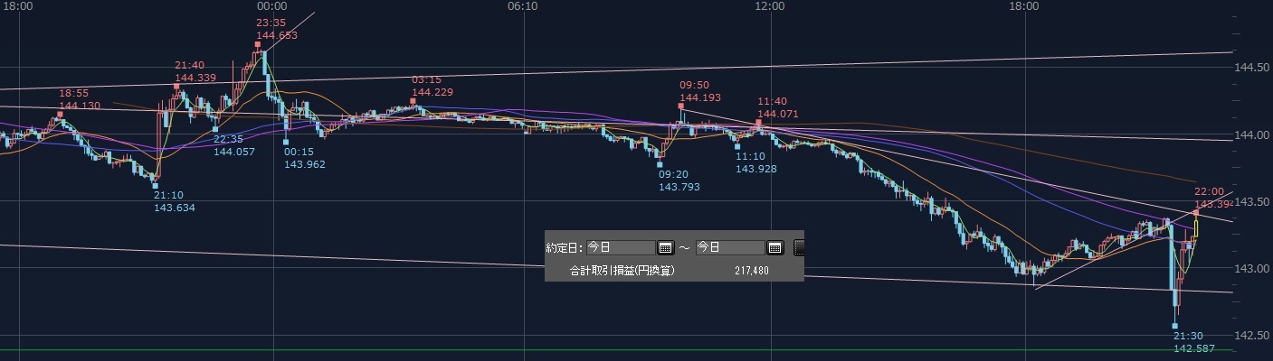 今日の利確が21万