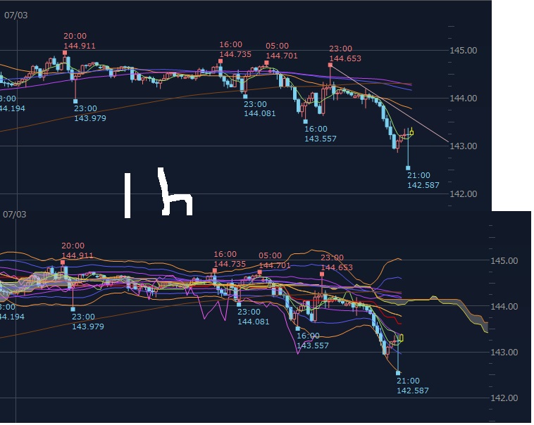 2023/07/07 - じょーじわしんとんさんの株式ブログ。タイトル:「何とか逃げ切った」 本文:ドル円調子乗ってsしたらー80万まで行ったけど今日やっと下がって来てくれて利確出来たあぶねー損切らずに良かった。そしてアホなsしてもたな淡々と流れ
