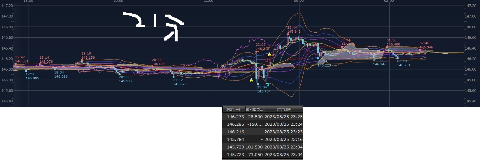 2023/08/27 - じょーじわしんとんさんの株式ブログ。タイトル:「ジャクソンホールのパウエルさん」 本文:木曜日に買って146円越えそうやったんで持ち越し金曜日予定通りに突破!とりあえず37万くらいにはなったのをチラ見その後見たら急落!焦って17万で利確wからの~S!!