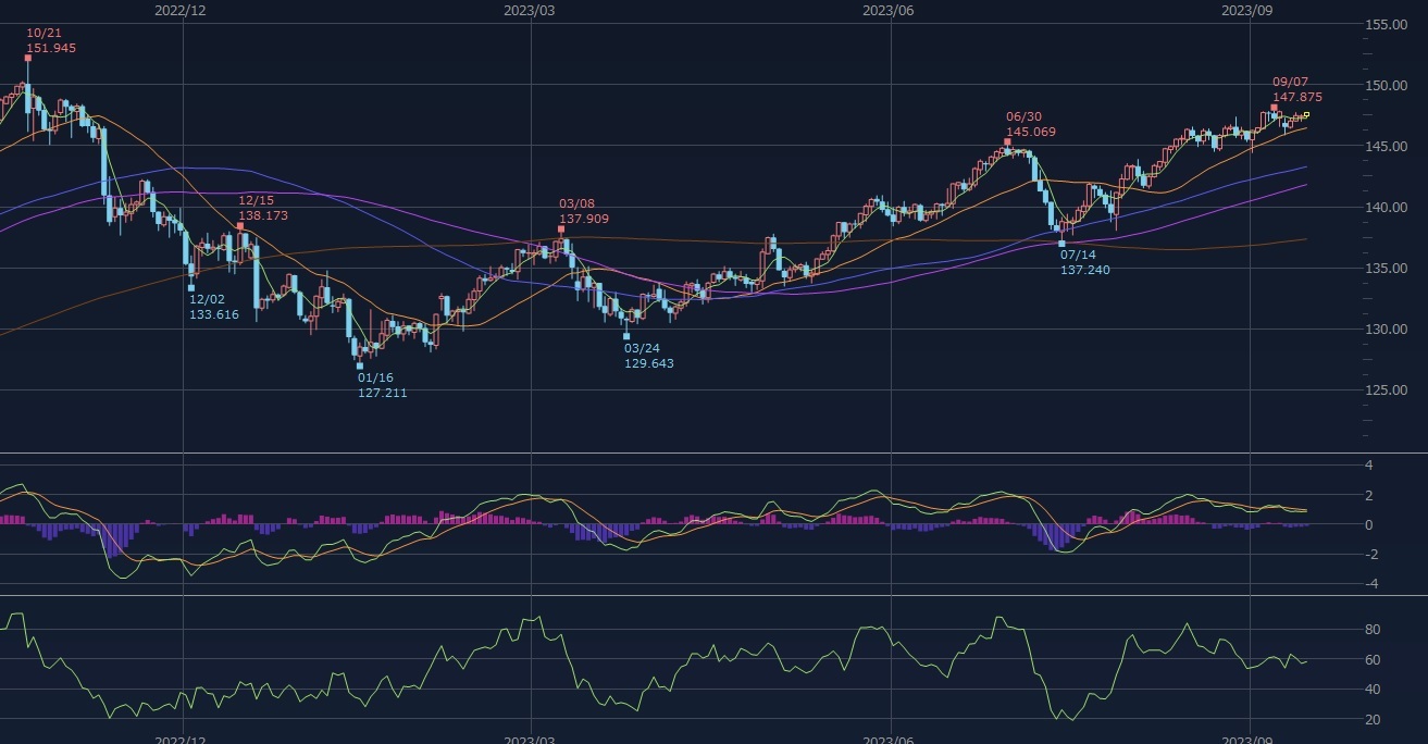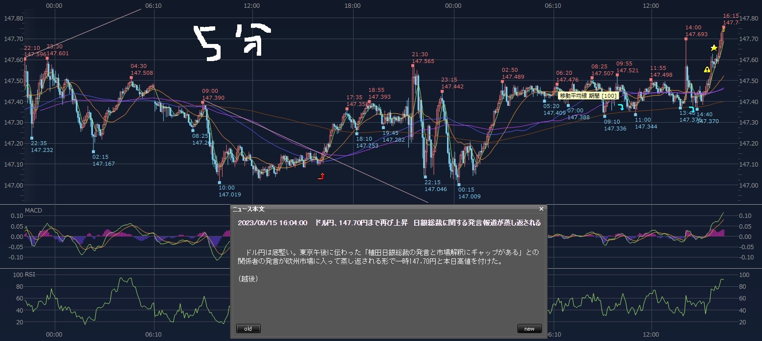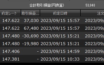 2023/09/15 - じょーじわしんとんさんの株式ブログ。タイトル:「両建ては上手く行かん」 本文:大人しく買いだけで持ってれば良いものをなかなか上がらんから売りを入れたら、そこが底!しかも2回もマイナス5万で損切そして買いをしばらくしてから10万で利確ん~まだ上がってやがる[em