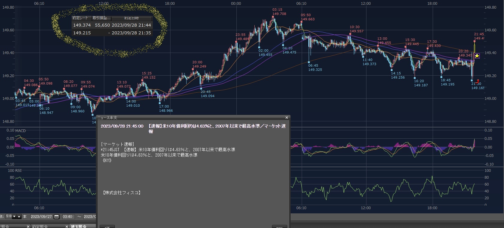 2023/09/28 - じょーじわしんとんさんの株式ブログ。タイトル:「指標発表で底打ち」 本文:底っぽいとこで拾い即効利確5万勝ちまだ上がってるけどね~