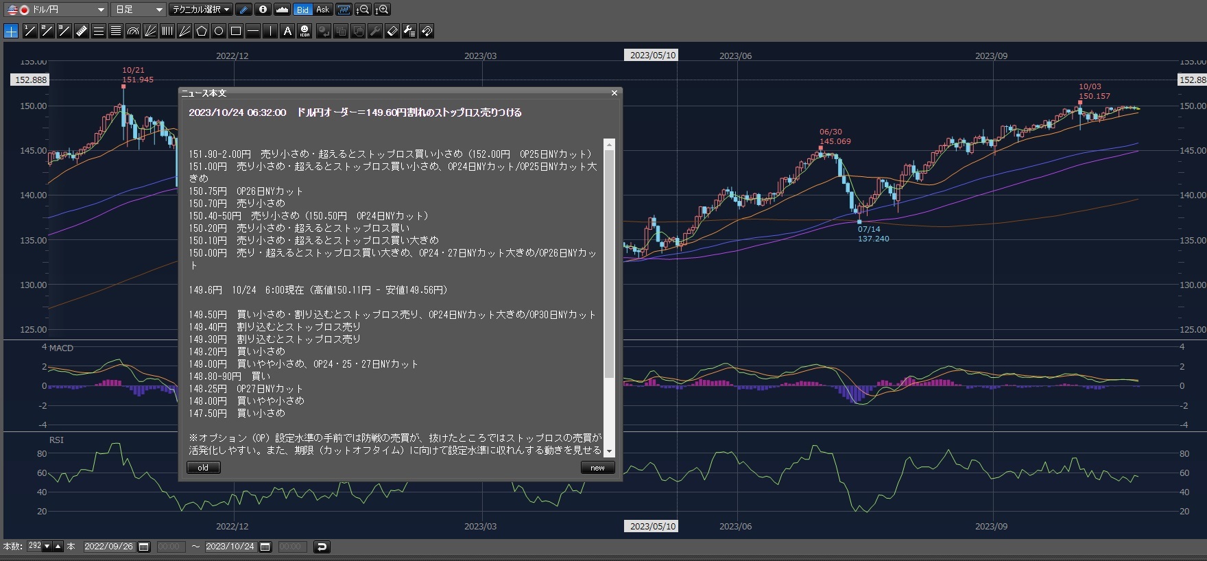 2023/10/24 - じょーじわしんとんさんの株式ブログ。タイトル:「寝てる間に下げちゃってるよ」 本文:見直すと最後に見たときにはもう下げ始めてた!酔っ払ってると正確な判断が出来ませんね~含み益が半分になりましたわ。とりあえずは下げ止まってるけど怪しげもう一回150円超えるのを待ってた