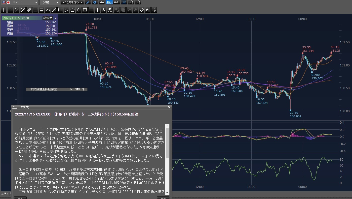 2023/11/16 - じょーじわしんとんさんの株式ブログ。タイトル:「今年一番のやらかし」 本文:昨日のCPIのこと忘れてすっかり寝てたけど起きたらビックリ150万のマイナスwそのままふて寝して更にマイナスが膨らんで200万今現在また戻って150万ドル円はなんとかなるけどユーロド