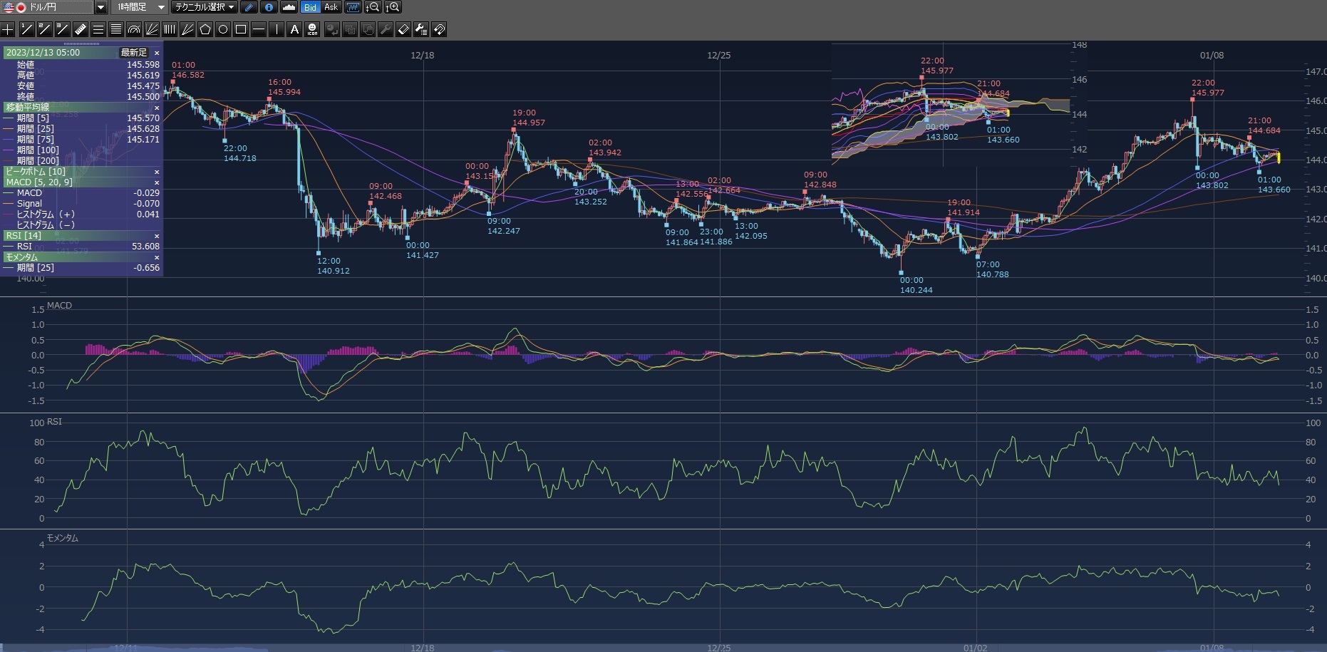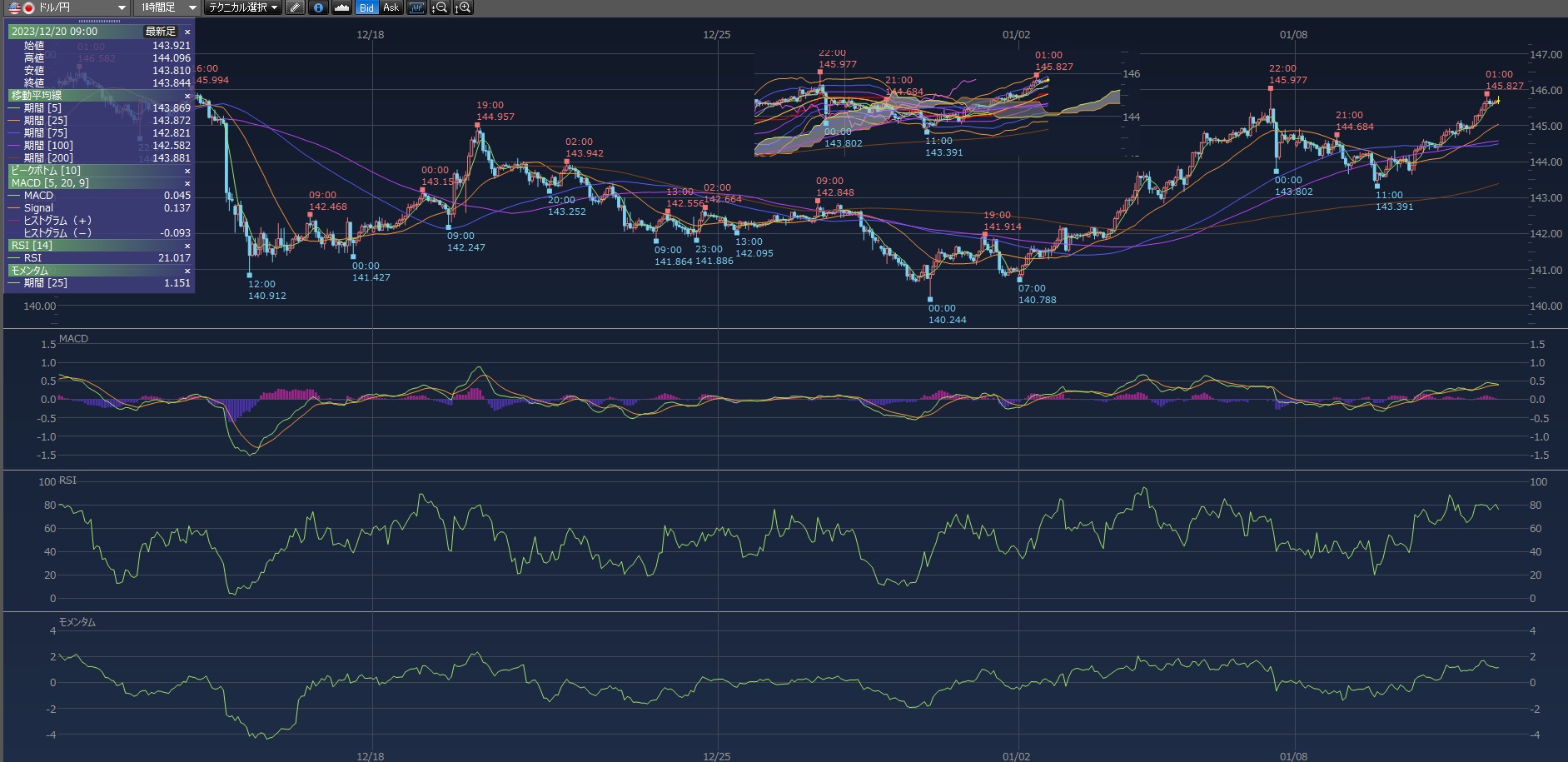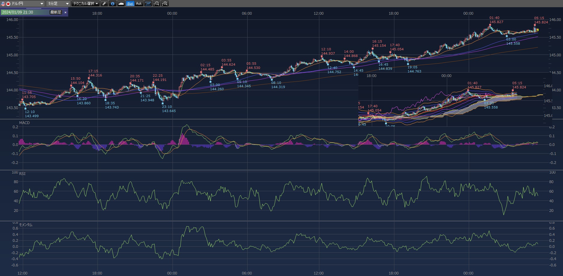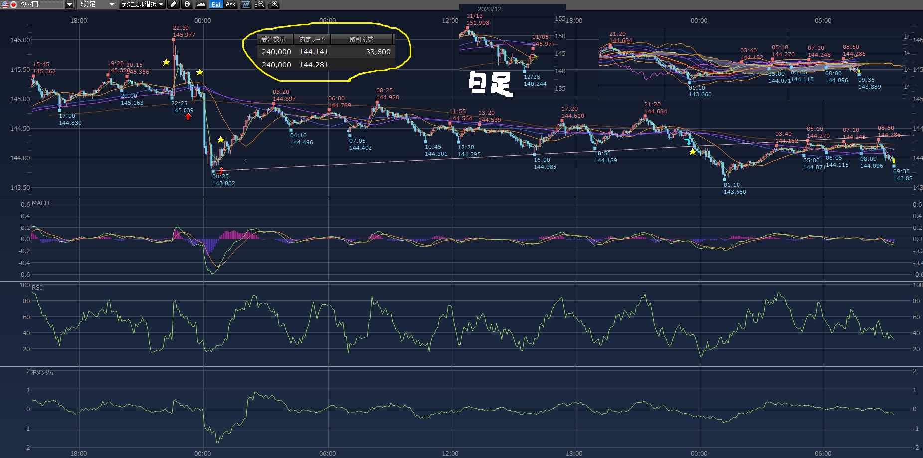 2024/01/09 - じょーじわしんとんさんの株式ブログ。タイトル:「144円割れ」 本文:戻り高値を結局売られてるので144円割れそうやなとSまあ結果そこまで待たずに利確!3万円也143.66円まで下がってますけどね。その辺ではもう寝てたけどとりあえず儲かって良かった。