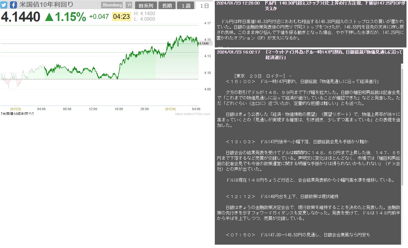 2024/01/24 - じょーじわしんとんさんの株式ブログ。タイトル:「振り回されるな~」 本文:今回のポジションで金曜日は含み益35万!でも一瞬でしぼんでしまった。それが昨日は18万の含み益からマイナス70万の含み損まで急落!難し過ぎるぜとりあえず目が覚めたら上がってたので25