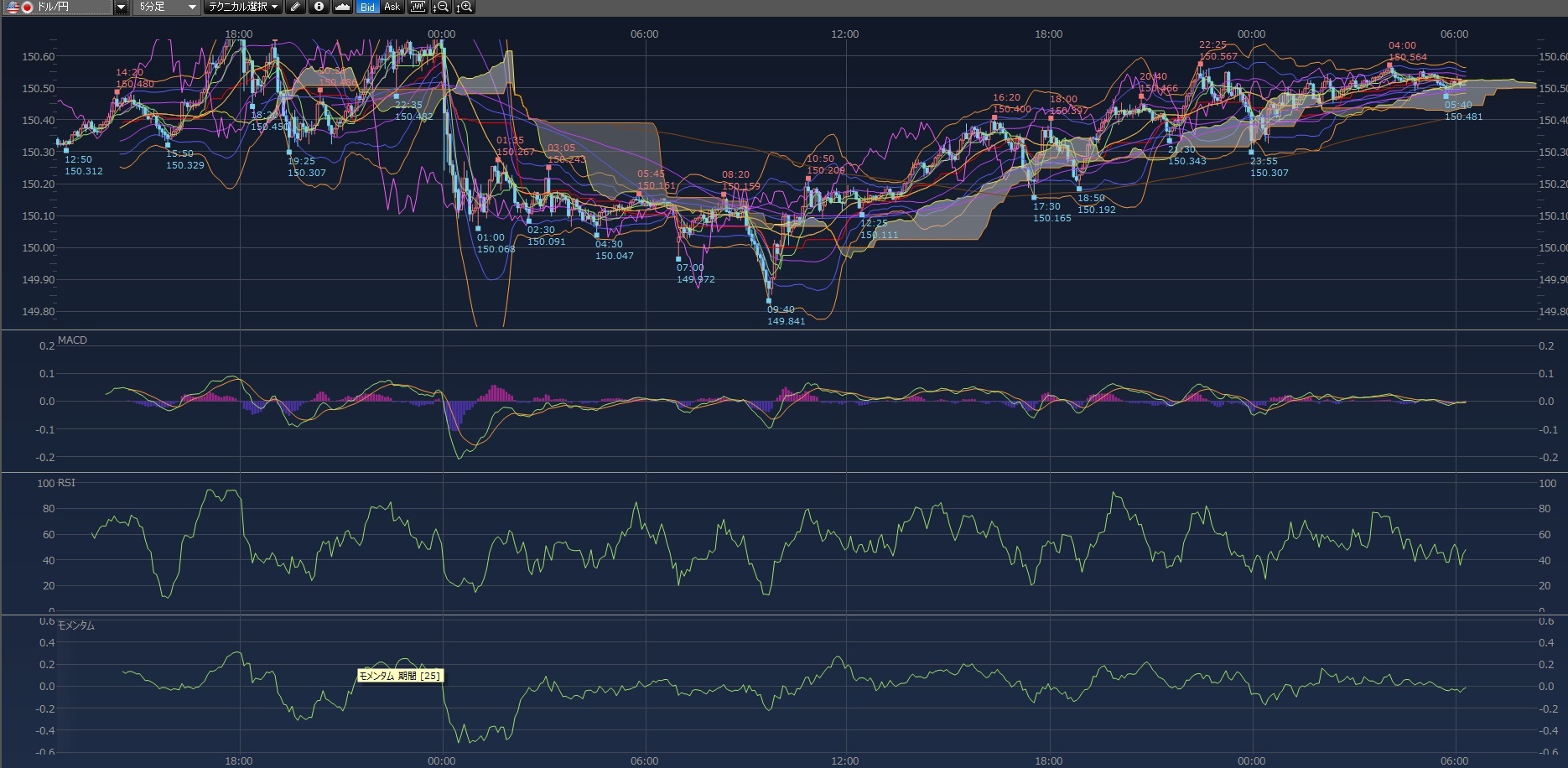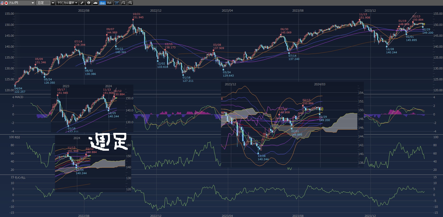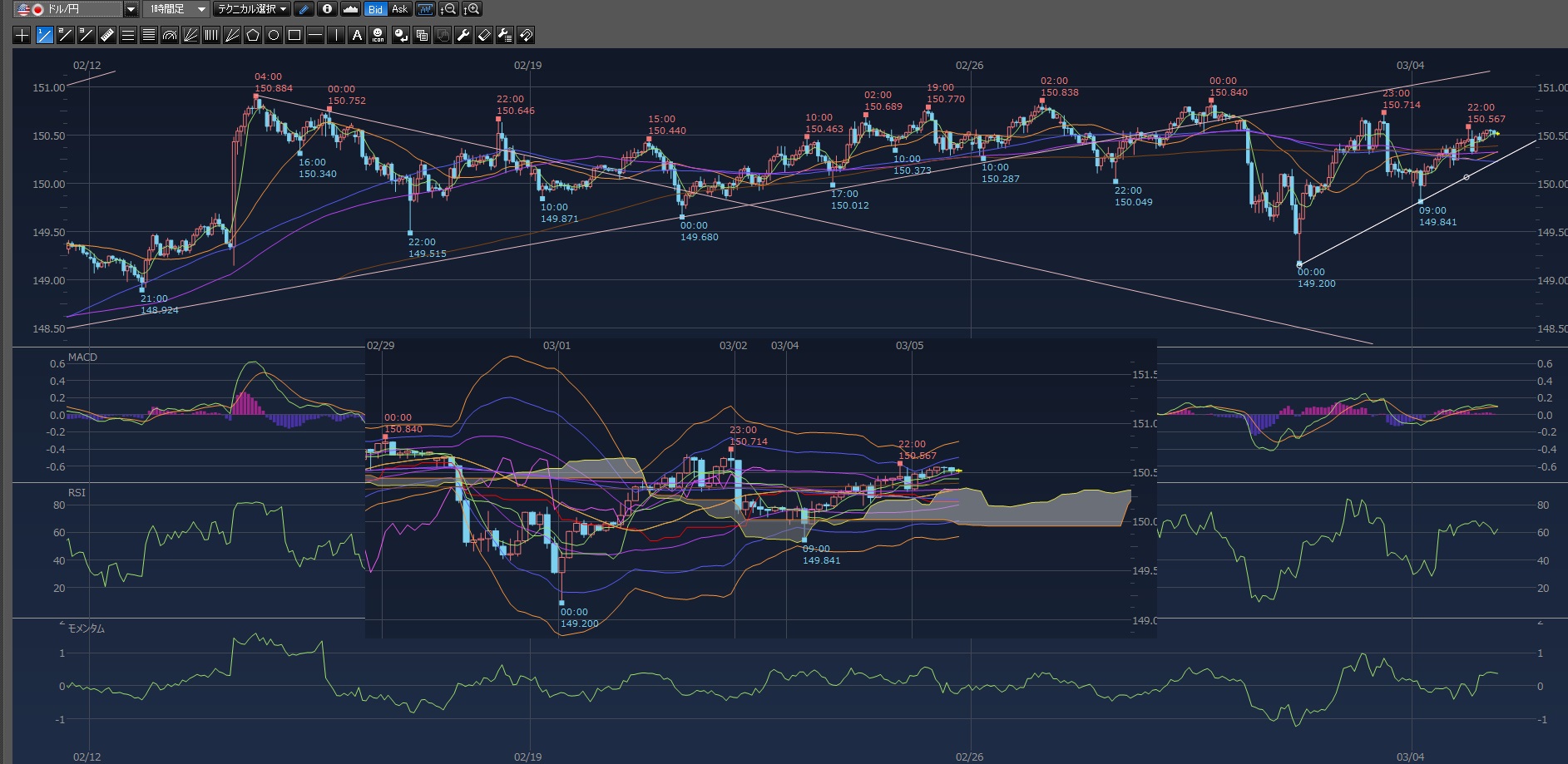 2024/03/05 - じょーじわしんとんさんの株式ブログ。タイトル:「ぼちぼちとしか上がらんばい」 本文:仕事中見たら上抜けて来たからポチッと上がったり下がったりで何とも・・・夜中目が覚めたら下がって来たんで2万で利確あざーす!もっと買ってたら良かったんやけど、まだ上で買ってるポジが残ってるwwまあ金利が