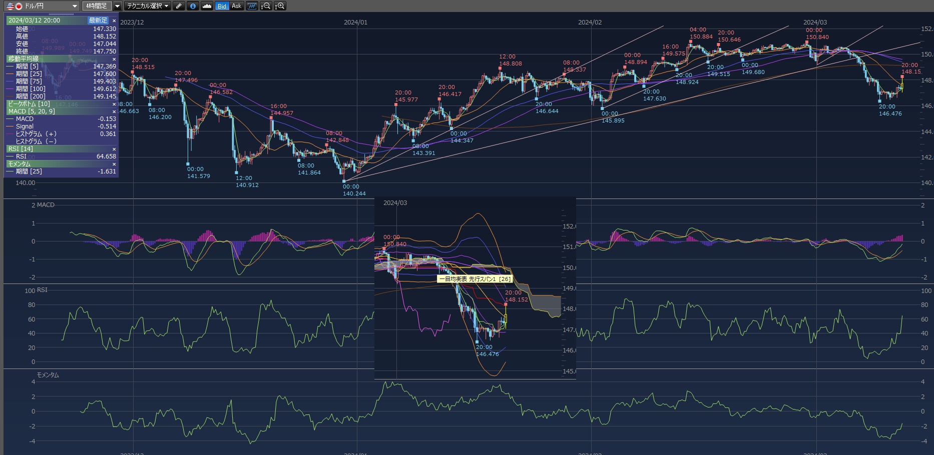2024/03/12 - じょーじわしんとんさんの株式ブログ。タイトル:「今日は休み」 本文:でも歯医者に行って帰ってきたら上がってたのでノーエントリー米10年債ともうあんま連動してきてないのかなとりあえずドル円のんが先に下げ止まってたNKはもう一段下げてからの反転