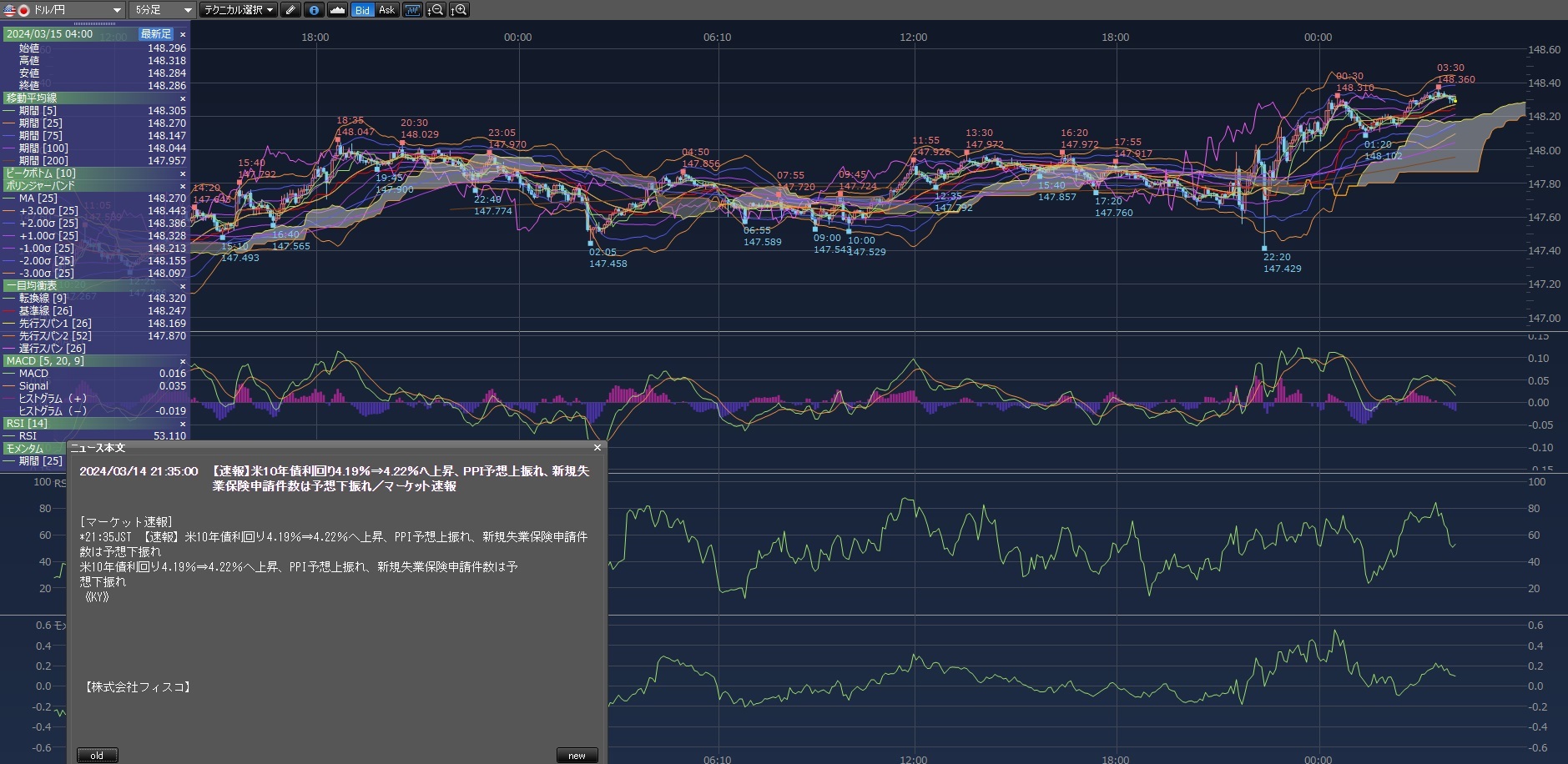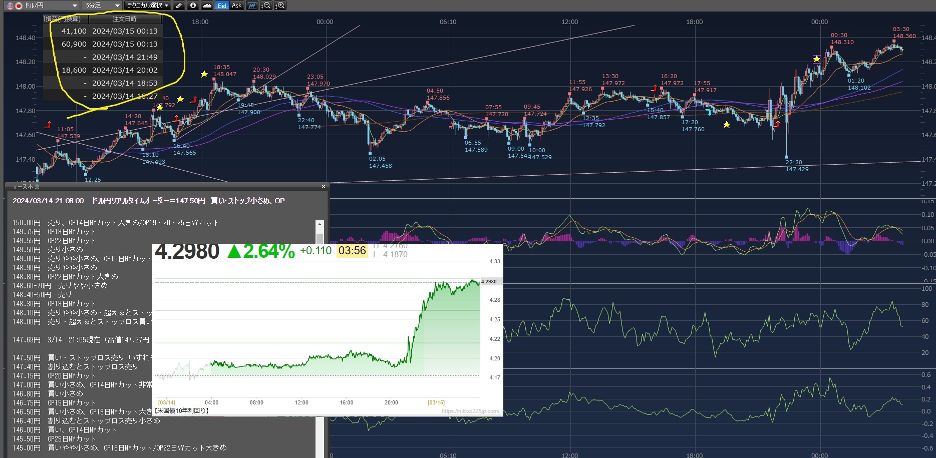 2024/03/15 - じょーじわしんとんさんの株式ブログ。タイトル:「どんなけ上下すんねんw」 本文:午前中は148円超え狙いで買ったらあかんと思ってたけど、夕方買ってしまった。案の定下落!!そのまま持ったまま別のタイミングでS微妙に下げないので利確。知らんまに寝てて起きたら指標発表で上げ下げした後米