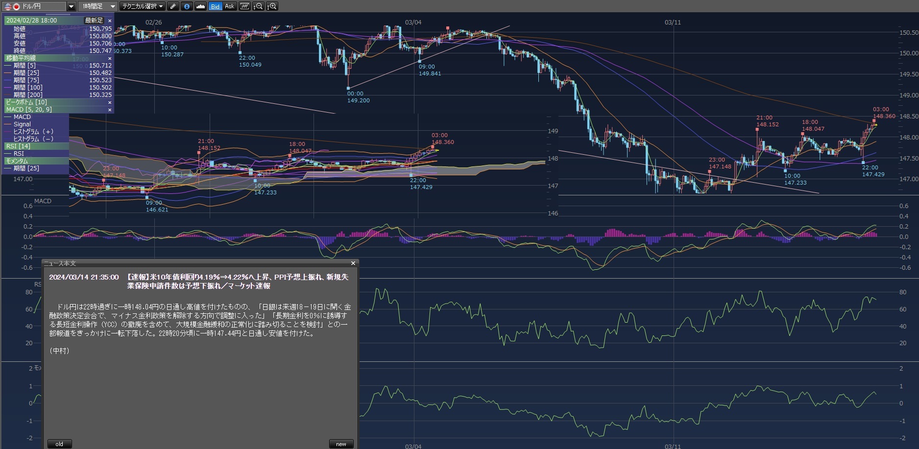 知らんまに寝てて起きたら指標発表で上げ下げした後