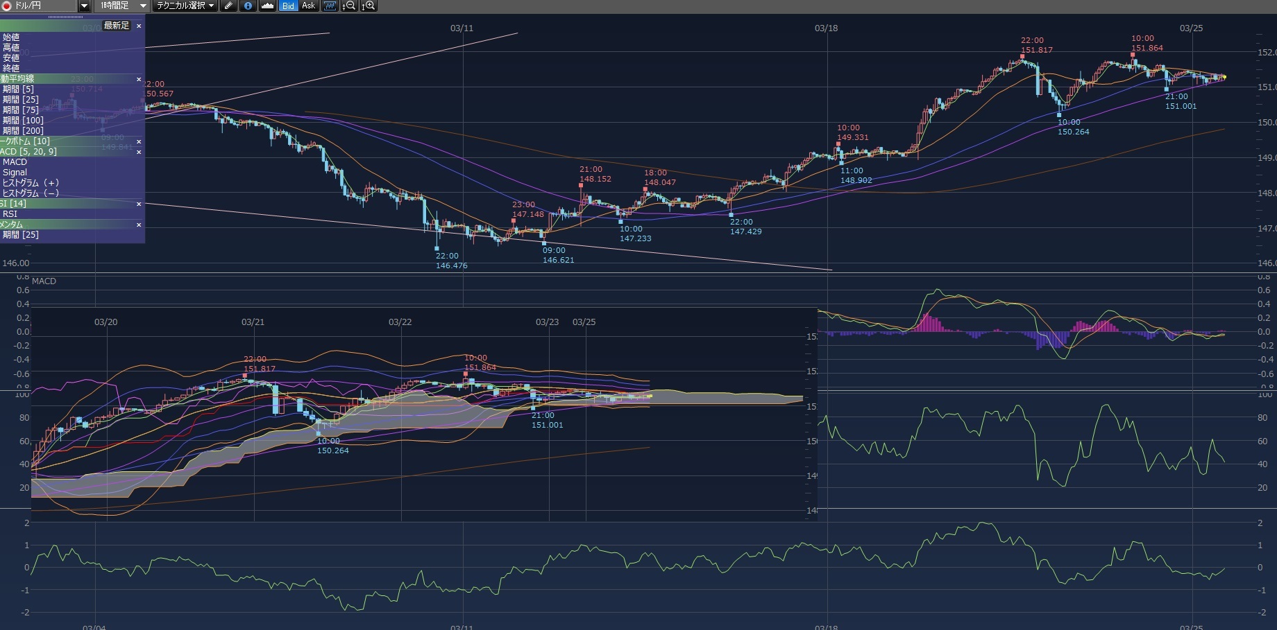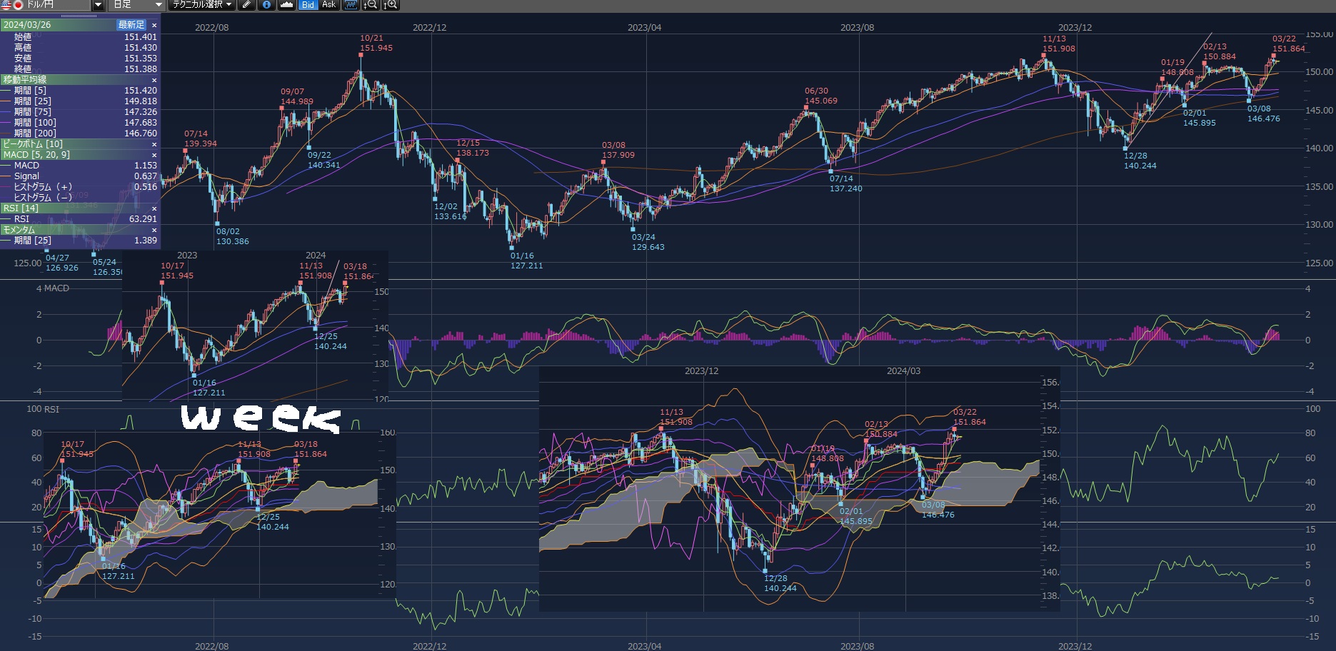 3/25 4,8、日足、週足