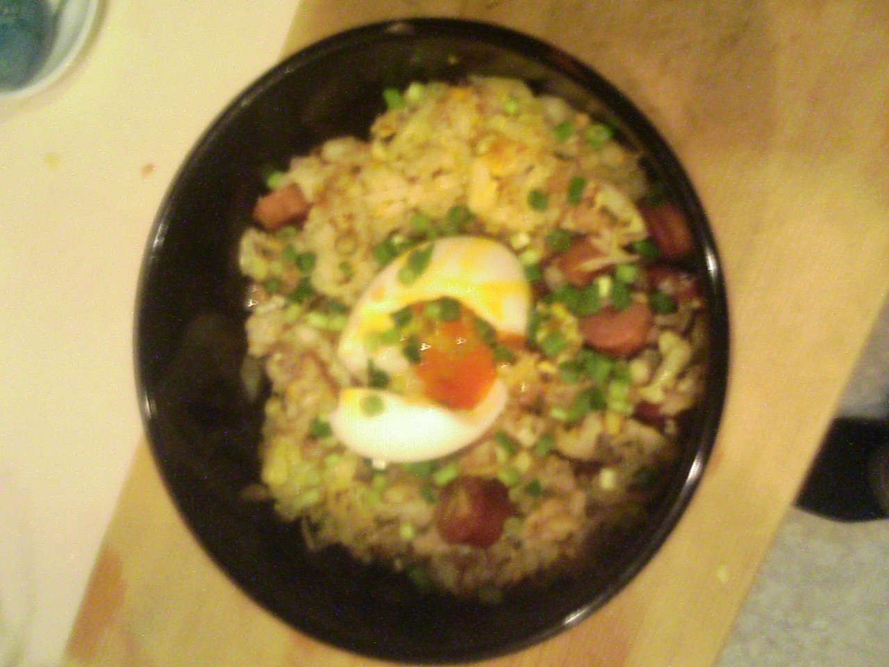 お昼は自家製特製チャーハンを食べました。半熟たまごがとろ~りとしてめっちゃおいしかったです。