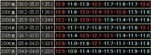 今年は出走馬の殆んどが父ヘイロー系ですので、他の観点から考えてラップを中心に見てみます。