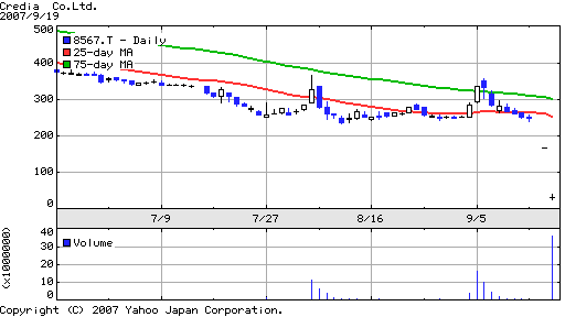 ですが、こんな日のデイトレードは難しいですねー。日中の値幅が無いとやりづらいです… そんな中、僕が楽しみにしていたのは「クレディア」今日は値幅制限も無いし、いくらで寄るのかなーと楽しみにしていたんですけど、なんか他の銘柄見てる間にいつの間にか寄ってました… 売買するつもりは無かったですけど、せっかくだから見たかったですねー。