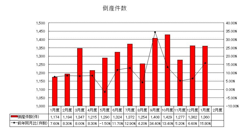 「全国企業倒産状況」の過去1年のデータを