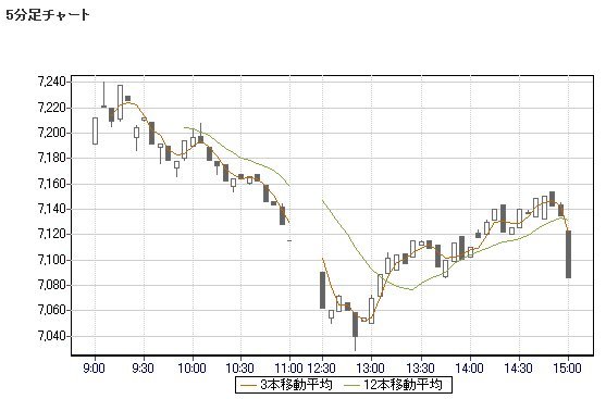 日経平均株価 7,086.03 -87.07 -1.21%