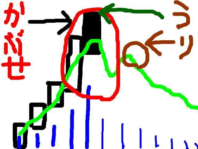 お疲れ様です。やはり日経先物に関しては、上値が重たい感じがしますね。テクニカルでは、7100ラインから重たくなります先物で勝負する方は7100~7200ラインではじわじわのしこりをこなしていくイメージで勝負していきましょう武田に関しては、前日のS安ラインまで戻しましたが、そのラインで頭打ちした後寄りの安値をわって、下げ加速とテクニカルどおりのチャートを描いておりました。教科書どおりのチャートの動きですので武田を眺めて テクニカルを学び取って下さい本日ザラバ中に紹介した 5603 虹枝株の動きを見ておりましたが筋が入っているような動きでしたこのような銘柄の場合だいたい仕掛け人である筋は寄り付きに株を売り抜けるパターンが多いです本日 空売りもまとめて巻き込んだ感じがしましたので(引け後の信用取り組みをチェックするのも大切)明日以降 もし大きくギャップアップするようならば空売りの買戻し,ちょうちん買いなどを誘っておいて売り抜けるパターンだとおもわれますその場合には かぶせ線 という足が出現します↑こんなイメージでしょうか。売るポイントとしては①出来高が多く、ギャップアップした位置②一度出来高が増えて、天井をつけて下落後の戻り↑ここが売るポイントだと思われますできれば、一度 上の抵抗線がある状態で空売りしたほうがいいと思われますので②のほうが 難易度的には簡単だと思われますただ 絶対はありませんのでLCラインは必ず入れましょう毎日一生懸命かいてますのでお役になった方はランキングクリックお願いいたしますm( )m