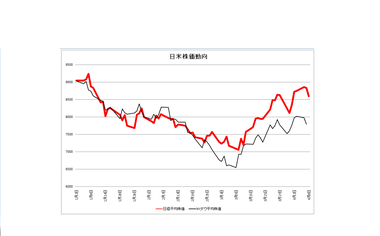 今朝のコメントで「米国以上にハイピッチで飛ばしてきた日経平均株価も調整局面に入る可能性が高い」と指摘しましたが、日米の株価動向を比較してみると、日本が大きく上方にかい離しているのが鮮明です。
