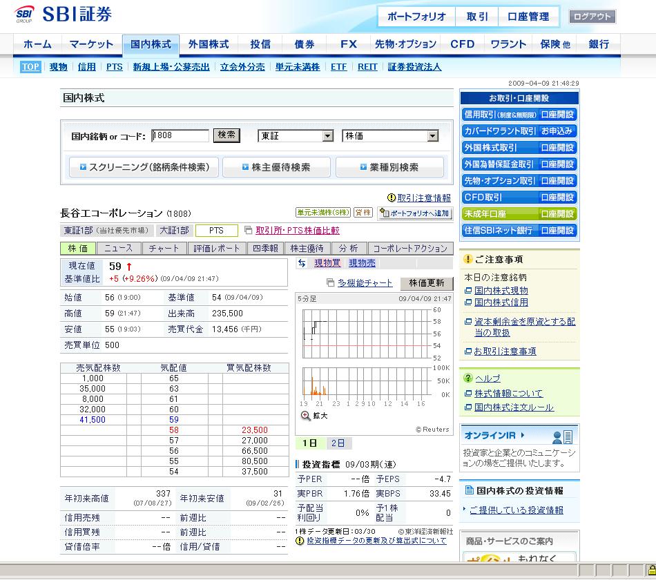 2009/04/10 - ★上海ピエロ★さんの株式ブログ。タイトル:「パイオニア 大京もいいけど 長谷工も・・・」 本文:長谷工今日もPTSで爆発MODE