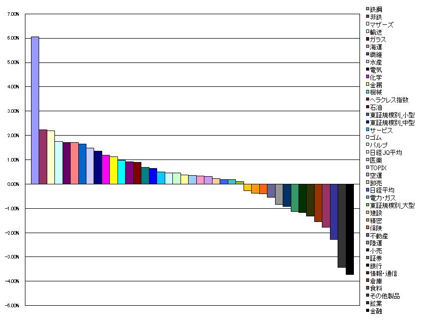 1.鉄鋼 6.05%(9.01%)
