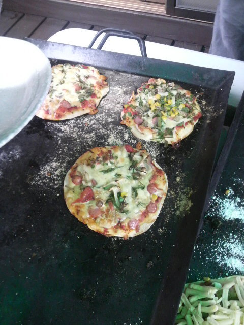 煙が目にしみましたが、野草のアクセントが効いた熱々のピザを堪能しました。