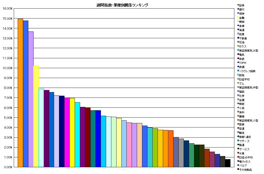 週間 指数・業種別騰落ランキング