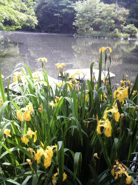 黄色いあやめ?(菖蒲?かきつばた?私には区別がつきません)が咲き、鳥がさえずり、トンボやカラスアゲハ、アオスジアゲハが飛び、亀が甲羅干しをしているなか、のんびりとランチを楽しめました。