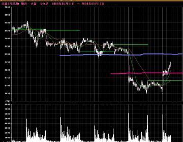 2009/05/15 - aaaいうえおさんの株式ブログ。タイトル:「先物意識するライン」 本文:先物意識するライン。 先物の現在のサポートライン、抵抗ラインです。