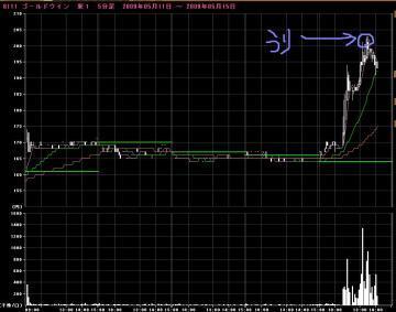 2009/05/15 - aaaいうえおさんの株式ブログ。タイトル:「8111 ゴールドウィン~ みずほ~^^」 本文:8111 ゴールドウィン 201円空売り~ 含み益ですので、手法 リバウンドでも自動利益確定。8411 みずほ~^^ 227円買い6419