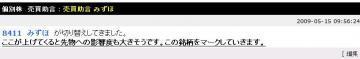 ←「ぽちっ」↓最初からこうなる事がきまってたのか~;; まぁ音楽でもきいてリラックスして下さい本日の日経のチャートです。↑ そして まとめ ↓先日のアメリカ市場の小幅高を受けて、機械受注の内容を受けて、小幅高ではじまりました。ただ、自分は、こういうタイミングは寄りは個人が買いで入るとおもってましたから、一旦、ふるい落としてから上にもっていくだろうと読み、いったん寄り値をわってからの買い指示をだしてました。結果、そのようにふるい落としになったのですが、下げ幅、時間も一瞬ですぐ上にぬけてしまいました。買い指示を出す前にあげてしまいました^^;この動きこそ、結果軽いサポートラインを一本作る動きですね。その後は、銀行株が窓埋め開始のゾーンにはいりましたが、下げないため、みずほを買い指示をだしました。ここを大口投資家がまたもや買い上げの動き。みずほが日経をそのあと押し上げた展開です。今日はみずほを一日中マークしておりました^^;結果売買代金 みずほがトップと、結果 まぁよかったかなと。↑こんな感じ^^;前場 スケ助言(一部抜粋) ↓ 後場 スケ助言(一部抜粋) ↓どのような助言ですか?という質問がありましたから、このような助言をしていると思って頂ければよいと思います手法のところは色つぶさせてもらいました^^;弊社のサービス開始して、ちょうど一ヶ月たちました。会員サイトもシステムが整ってきましたので。会員になりたい方を募集していきたいと思ってます。基本的に勉強しながら、儲けさせたいというのが弊社の考えです。興味のある方は→ こちら 来週の日経ですが、私の理想は、「下の窓をしっかりうめてほしい」以上が、自分の理想的な買い方目線の展開を想像してます。無駄に上につっこむとまた高値しこりができてしまうからです。では今週もお疲れ様でした~~^^来週もみなさんよろしくお願い致しますね^^ ←お役に立ちましたら「ぽちっ」