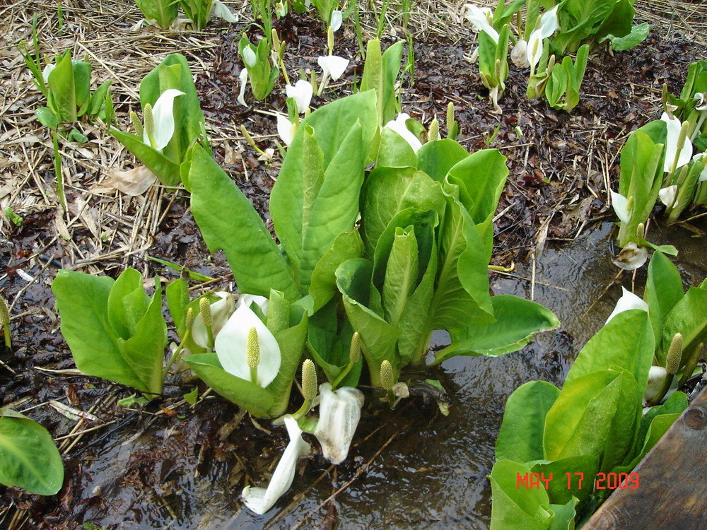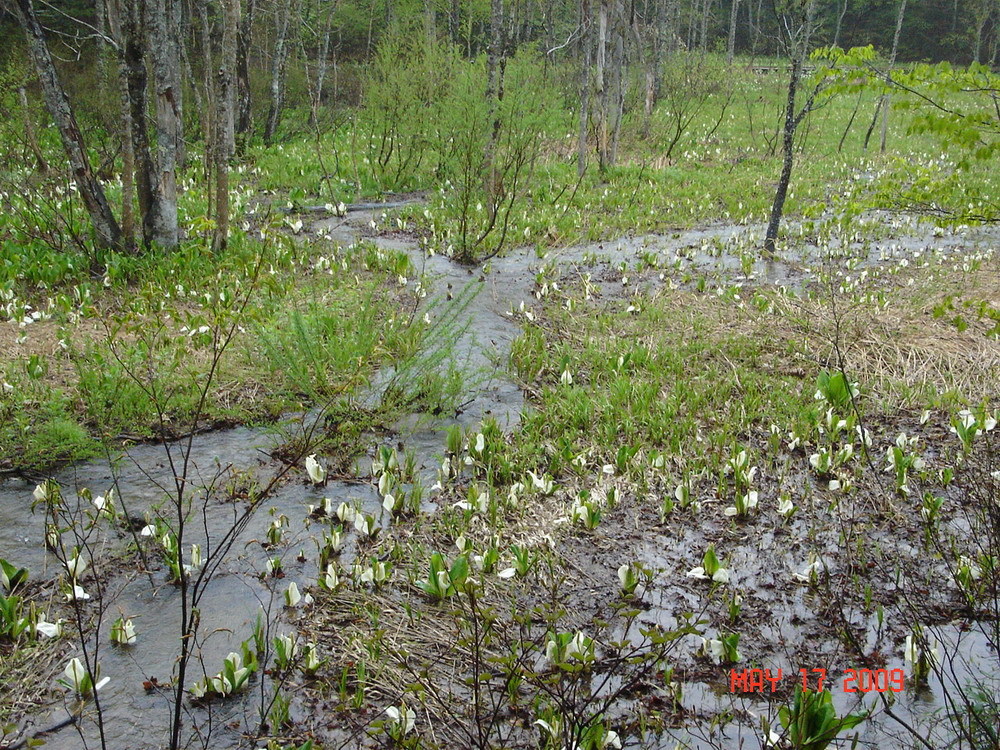2009/05/25 - リタイア・尾瀬遠望さんの株式ブログ。タイトル:「鬼無里・水芭蕉」 本文:2日目は鬼無里へ。 ここの水芭蕉群落は大規模で高原の湿地全体に水芭蕉が繁茂しています。 花は盛りでしたが、当日は雨天で雪も残っていて非常に寒かったです。