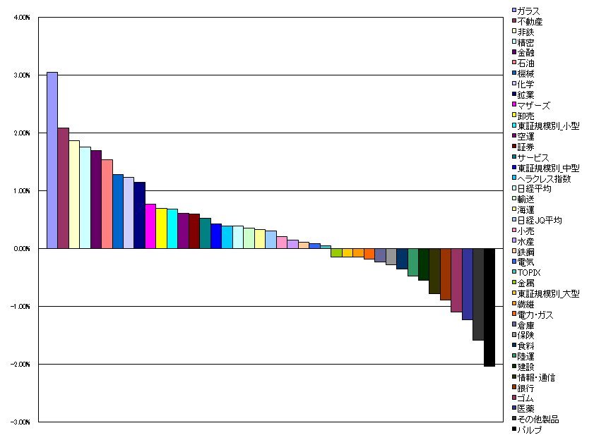 2009/06/03 - tetsuさんの株式ブログ。タイトル:「指数・業種別騰落ランキング」 本文:1.ガラス 3.05%(0.76%) 2.不動産 2.09%(-2.11%) 3.非鉄 1.87%(-0.66%) 4.精密 1.76%(0.68%) 5.金融 1.70%(-2.43%)