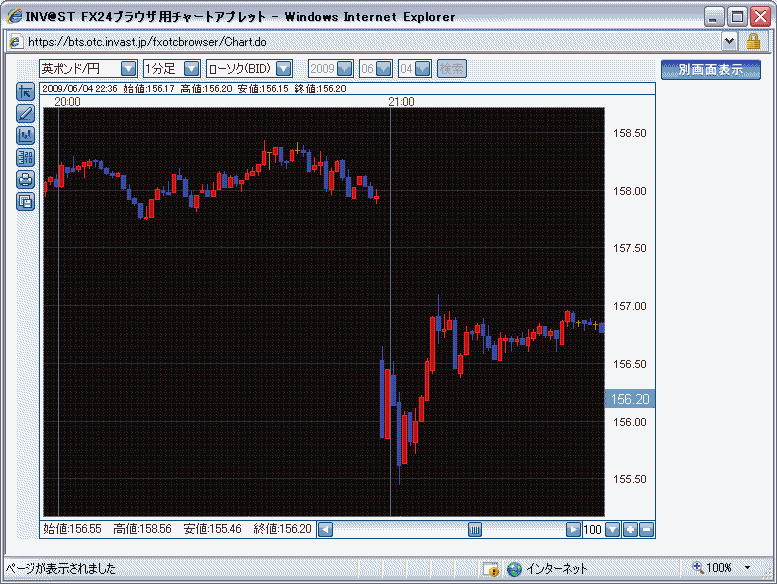 2009/06/04 - 夢幻さんの株式ブログ。タイトル:「ポンドがひどいことに」 本文:今、1分で1円以上落ちました。 たまたまチャート見てたら、物凄い勢いで下のほうへ。 米ドル円には変化はなく、ドルストレートで一気に行った(逝った?)ようですね。