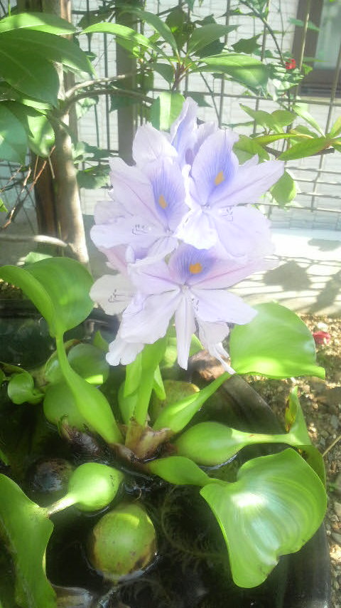 2009/07/04 - へそくりパパさんの株式ブログ。タイトル:「ホテイアオイの花が咲きました」 本文:水草の蕾が今日は見事な花を咲かせていました こういった楽しみは風情があっていいものです 庭のトマトもいよいよ本格的な収穫の時期です