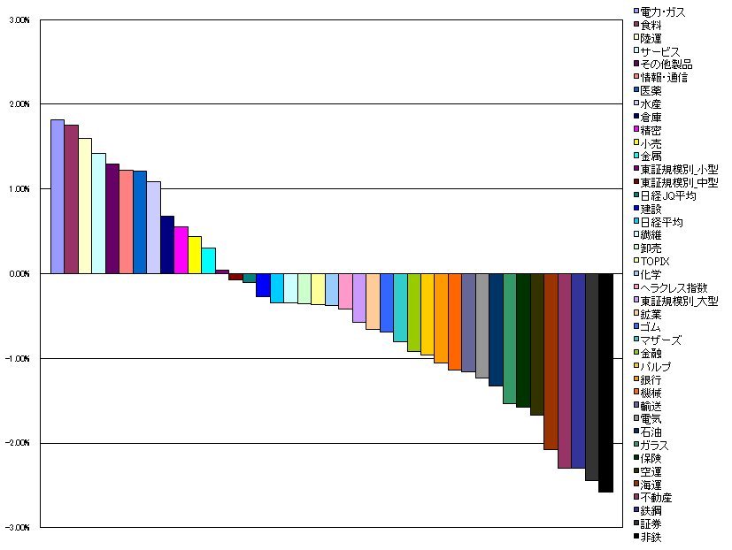 39.鉄鋼 -2.30%(-2.62%)