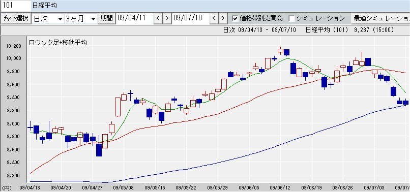 75日移動平均線 9,266↑
