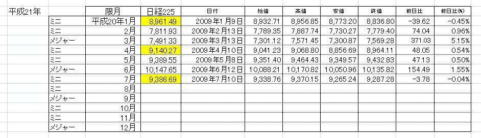 2009/07/10 - tetsuさんの株式ブログ。タイトル:「今年3回目の幻のSQ。」 本文:9,386円69銭。 今回SQ値を達成できませんでしたね。 今までの流れをみると、しばらくは調整に なりそうですね。