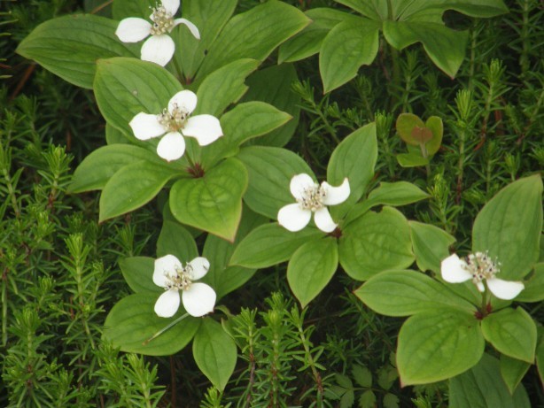 左から「ツマトリソウ(さくらそう科)」、「ゴゼンタチバナ(みずき科)」、「マイズルソウ」