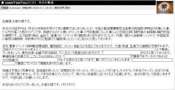 2009/09/01 - aaaいうえおさんの株式ブログ。タイトル:「本日の解説(会員様募集中)」 本文:音楽でもきいてまったりしてください(^-^)投資家の皆様