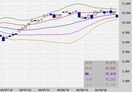 2009/09/02 - tetsuさんの株式ブログ。タイトル:「【指標データ】雇用指標待ちで下落後動かず」 本文:本日の国内市況 SGX先物(始値) 10,505 日経平均株価 10,280.46 -249.60 -2.37%