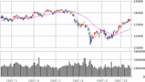 昨日の日経平均はなんとかプラスで終了しました。米国は-108ドル、シカゴCME日経先物-80円でした。欧州も大引けで急落。あちこちでサブプライムの影響が数字で出ていますが何で下げているかは明確には分かりません。落ち始めると勢いがあるので注意が必要ですね。さて、10月といえば「ブラックマンデー」。今週末19日で20年を迎えるようで、当時の1987年は有頂天になって株かも上がっていたところで暴落したようです。今年も・・・?
