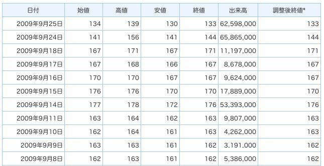 9月14日(月曜日)の寄付き(177円、前日比+14円)で大量に処分しています。