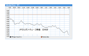 JPモルガン・チェースのザラバの株価推移が、今日の市場の雰囲気を示しているようです。