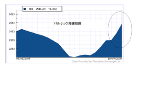今日は海運市況の上昇に注目が集まりました。最近1カ月のバルチック海運指数は、このようになっています。
